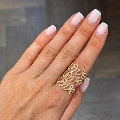 Meticulously handcrafted in 18k gold, a 0.22 carat F/VS diamond modern 'LOVE' band statement ring that layers seamlessly with other House of K'dor jewellery.