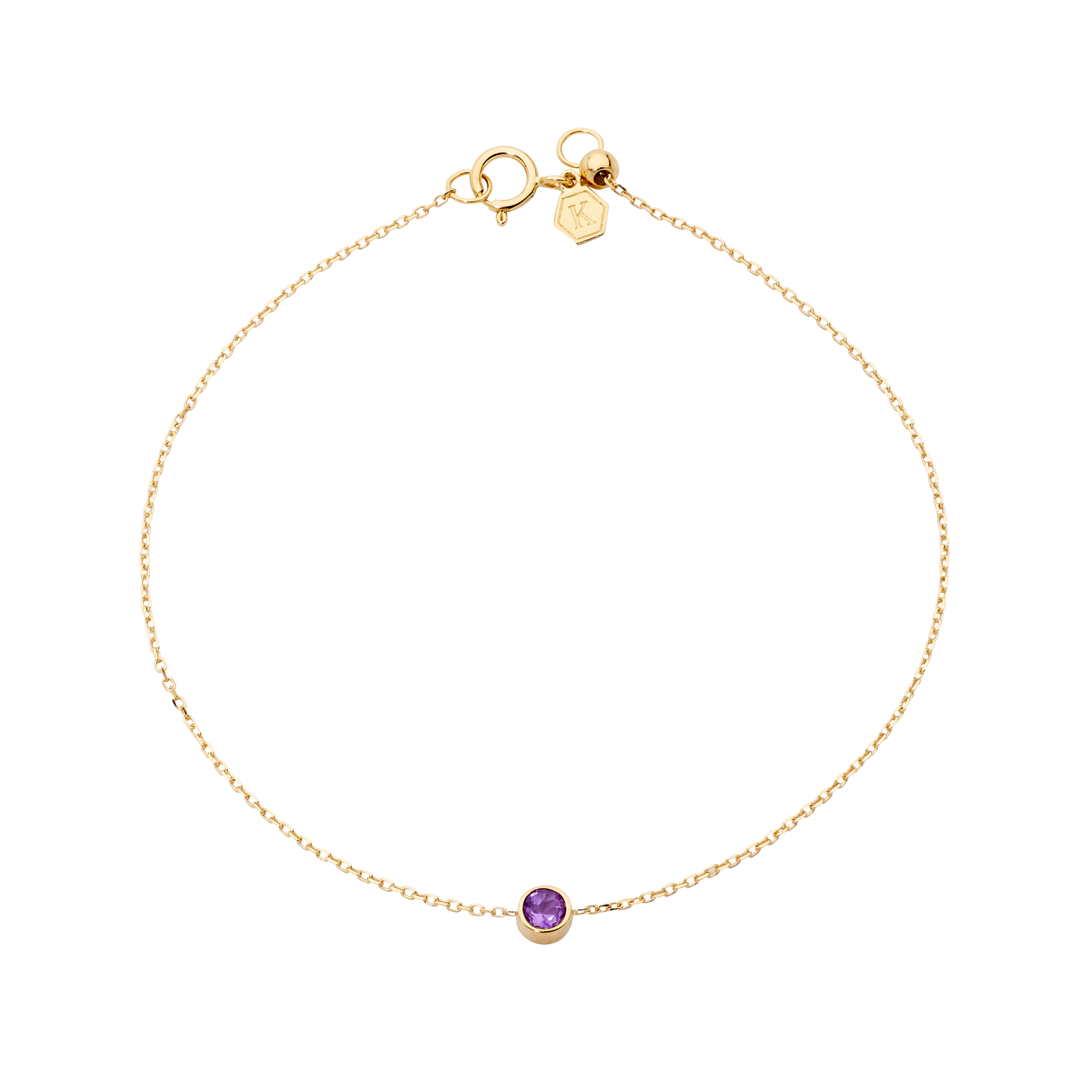 Celebrate your story with our natural Amethyst Birthstone Bracelet, crafted in 18k gold and elegantly strung on our signature K'DOR chain. Each bracelet features a precious gemstone that reflects the month of your birth—February's birthstone it’s believed to calm the mind, soothe emotions, and inspire inner strength. A meaningful piece designed to honor your journey with timeless beauty.