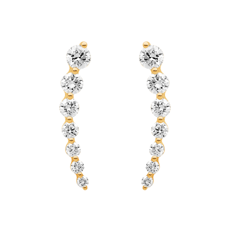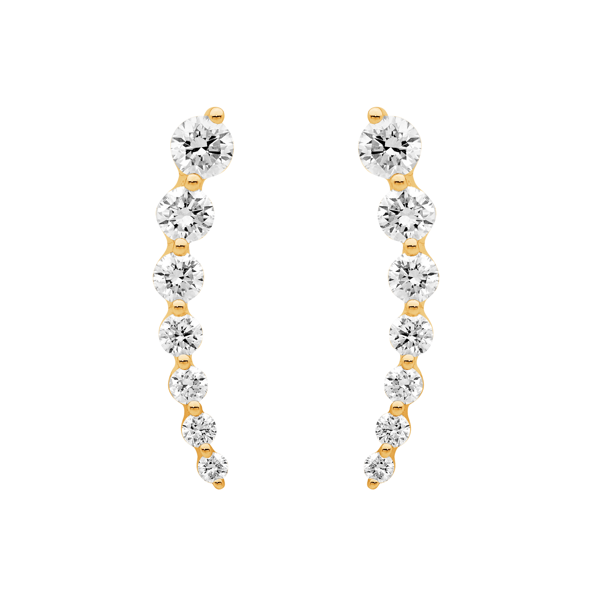 An elegant, handcrafted natural diamond ear climber, masterfully set in 18k gold. This sophisticated piece features 7 brilliant-cut diamonds, each secured in delicate tension settings, with a total weight of 0.44 carats. A modern statement of timeless luxury, perfect for elevating any look either as a single earing or perfect pair.